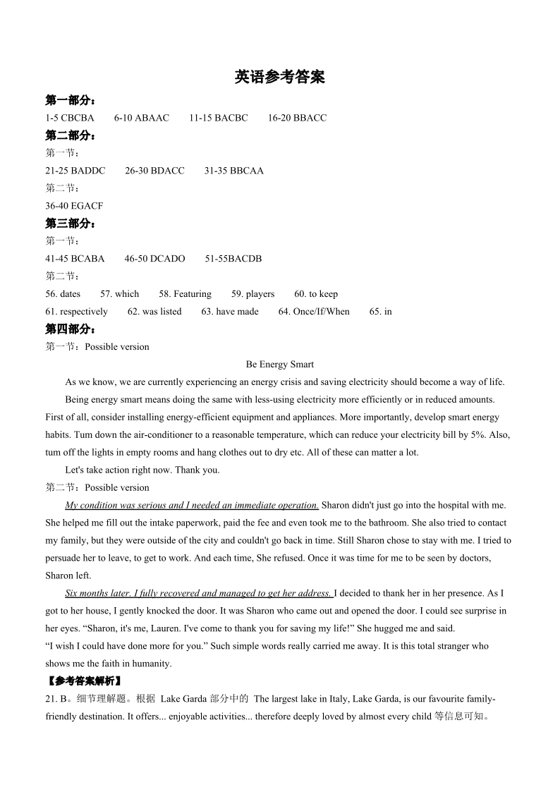 安徽省“皖江名校联盟”2023-2024学年高三上学期12月月考 英语答案
