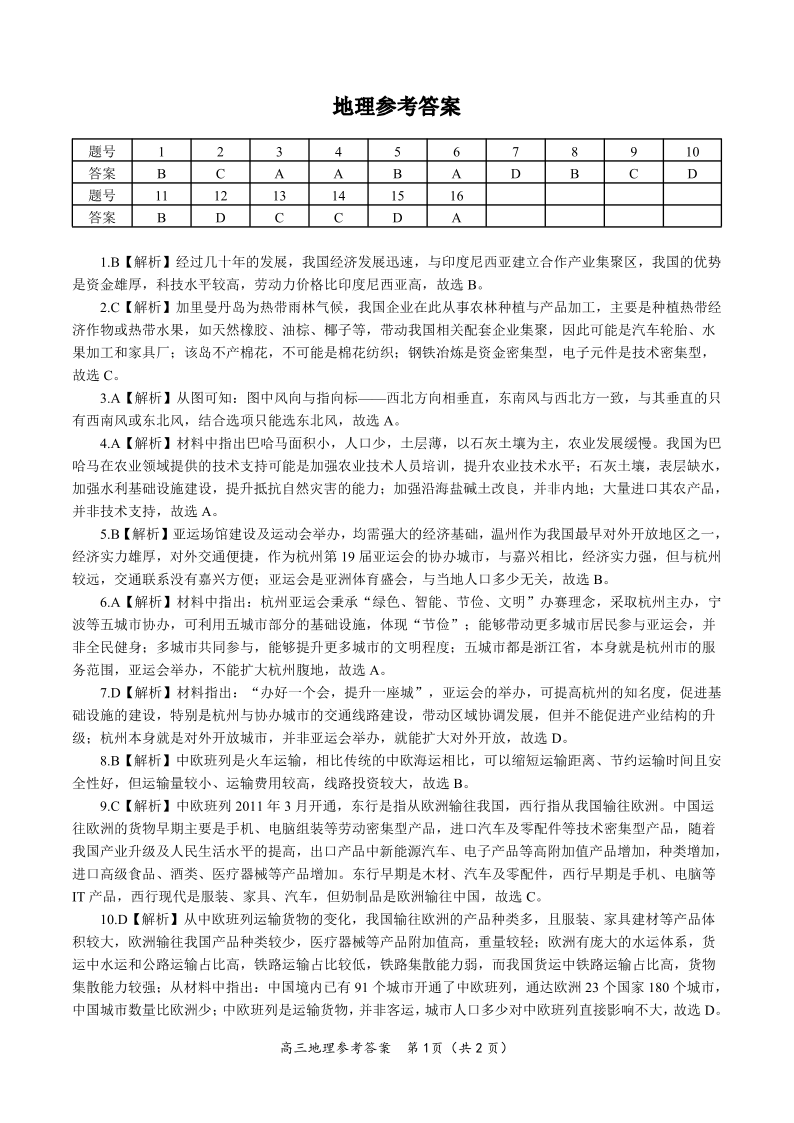 安徽省“皖江名校联盟”2023-2024学年高三上学期12月月考 地理答案