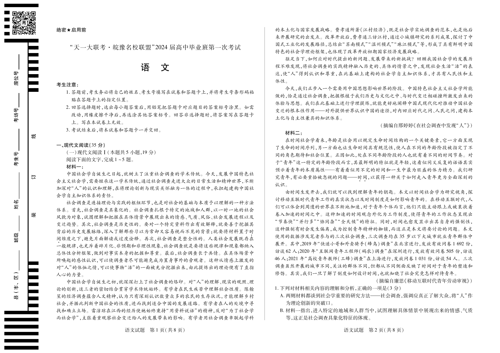 语文皖豫联盟高三一联试卷