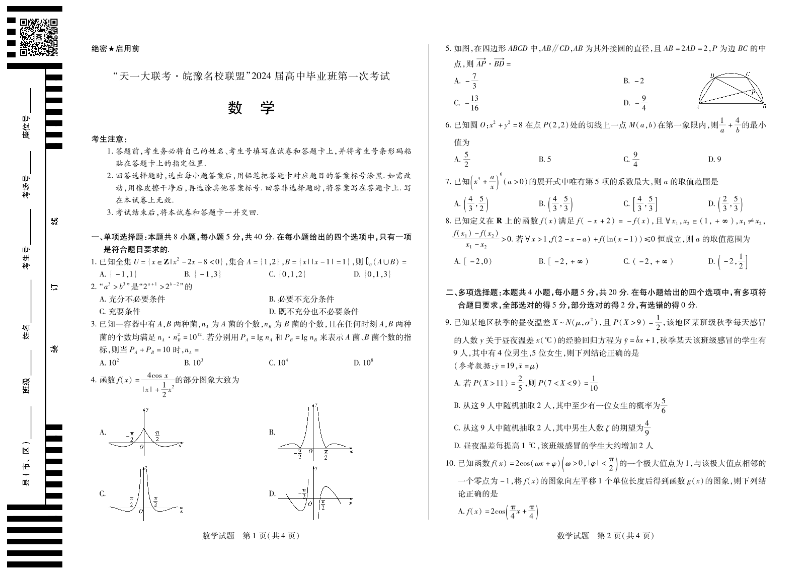数学皖豫联盟高三一联试卷