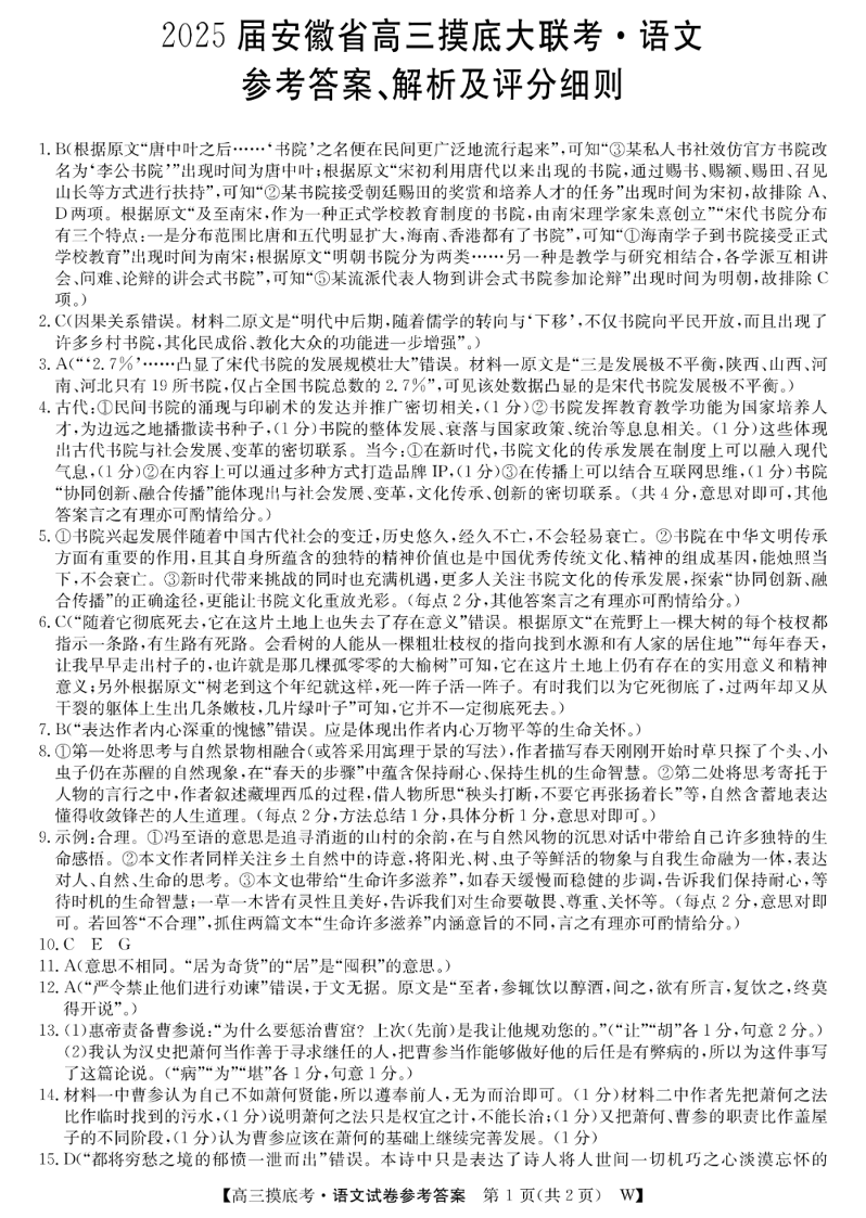 2025届安徽省皖南八校高三摸底考试+语文答案
