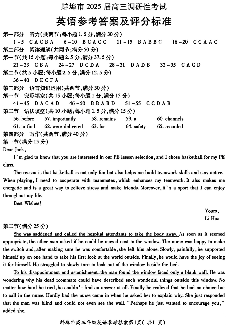 安徽省蚌埠市2025届高三年级上学期8月调研性考试+英语答案