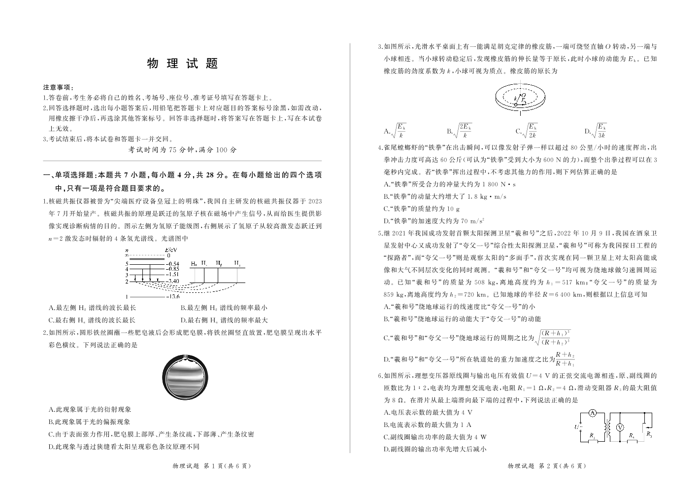 2024届百师联盟2023届高三一轮复习(五)物理