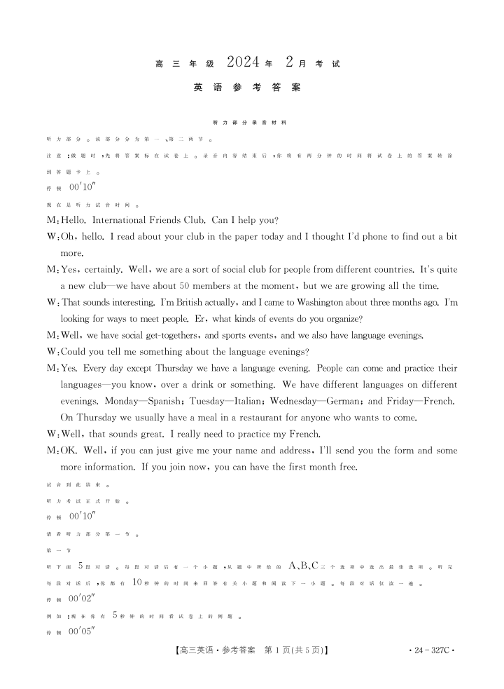 河北省部分重点高中2023-2024学年高三上学期期末考试 英语答案