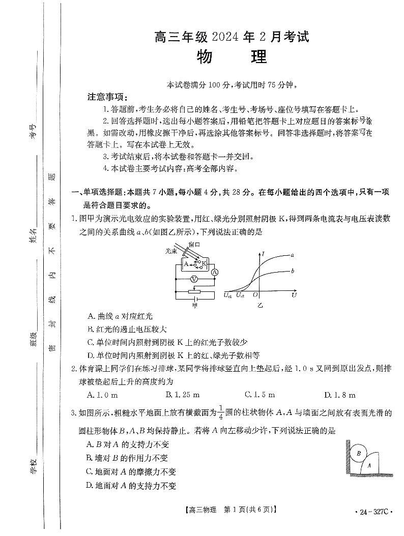 河北省部分重点高中2023-2024学年高三上学期期末考试 物理