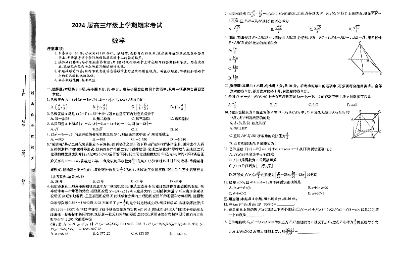 河北省唐县第一中学2023-2024学年高三上学期1月期末考试 数学
