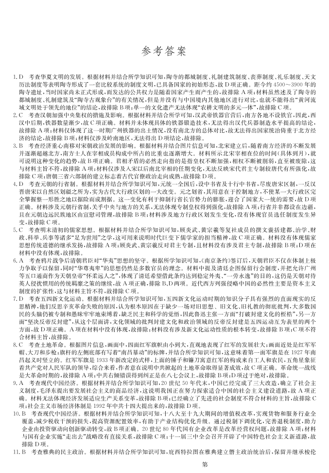 河北省唐县第一中学2023-2024学年高三上学期1月期末考试 历史答案