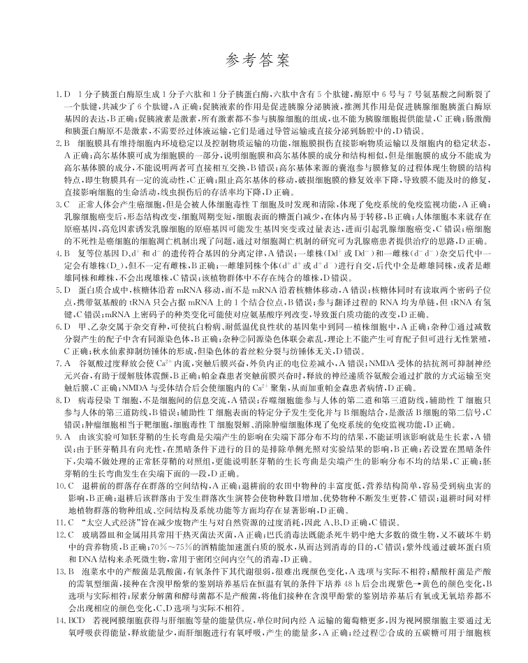 河北省唐县第一中学2023-2024学年高三上学期1月期末考试 生物答案