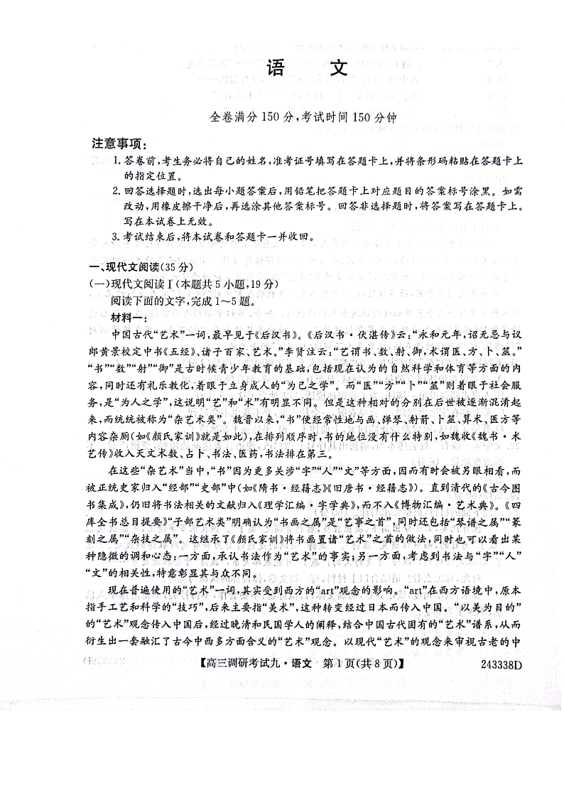 河北省定州市第二中学等校(金科大联考)2023-2024学年高三上学期12月质量检测 语文