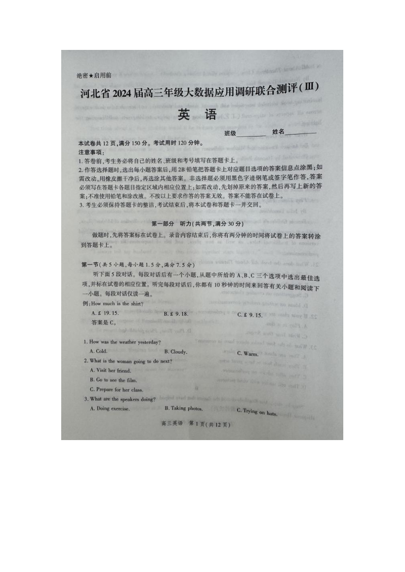 河北省2023-2024学年高三上学期大数据应用调研联合测评(III)英语
