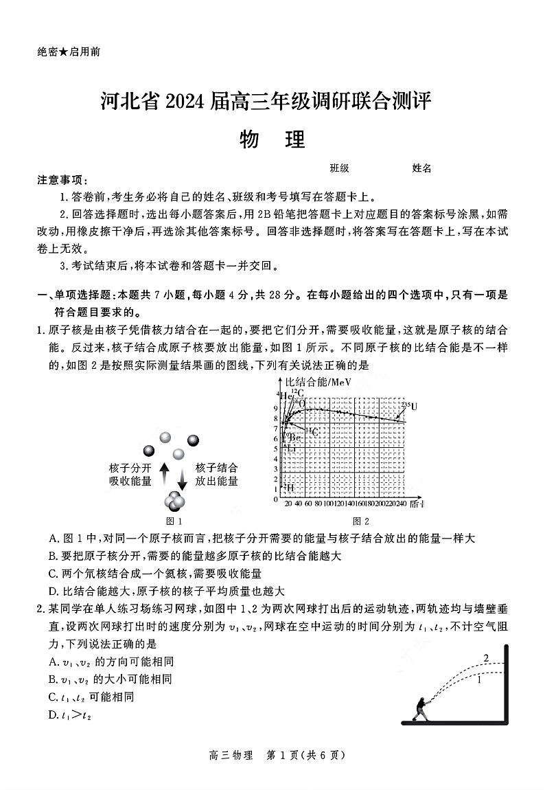 河北省2023-2024学年高三上学期大数据应用调研联合测评(III)物理