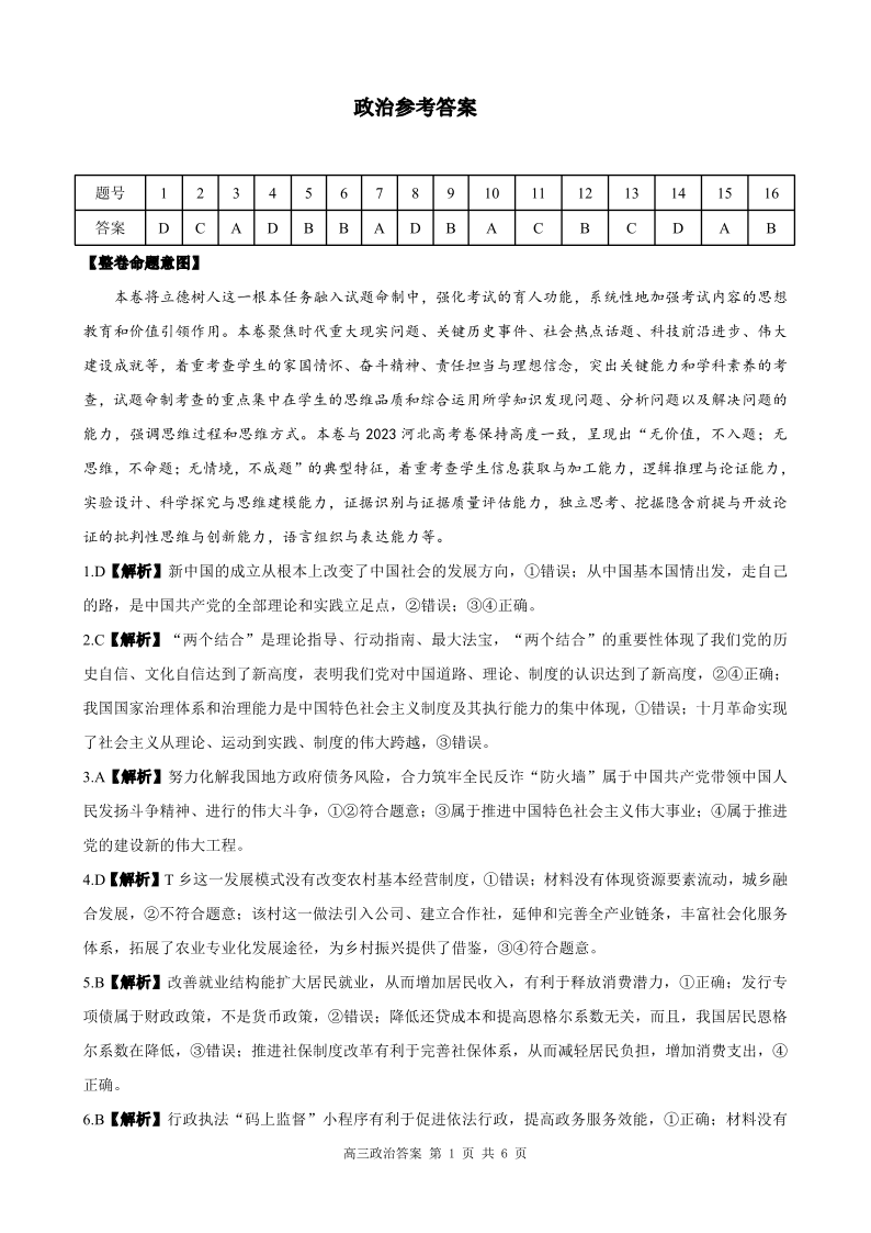 河北省2023-2024学年高三上学期大数据应用调研联合测评(III)政治答案