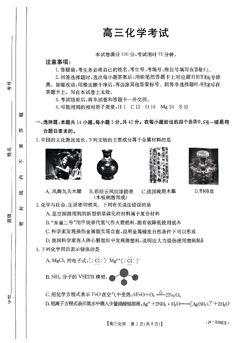 河北省保定市部分重点高中2023-2024学年高三上学期12月期末考试 化学