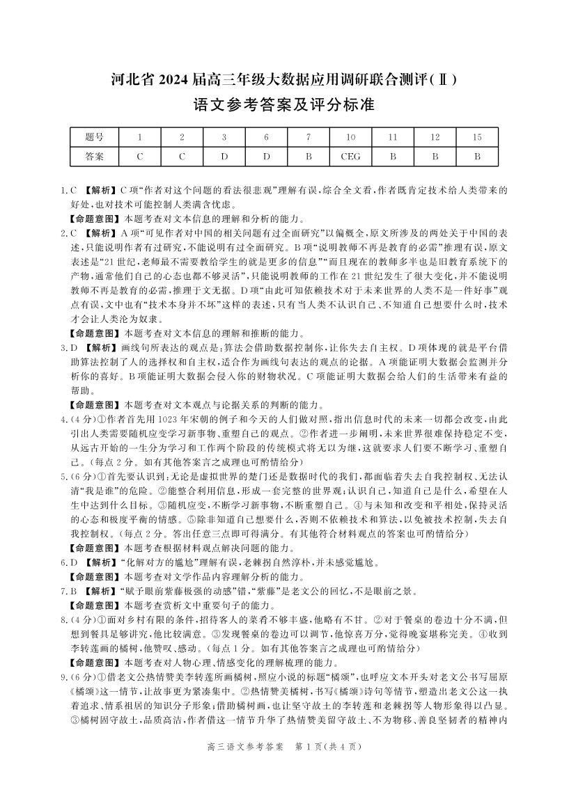 河北省2023-2024学年高三上学期大数据应用调研联合测评(Ⅱ)语文答案