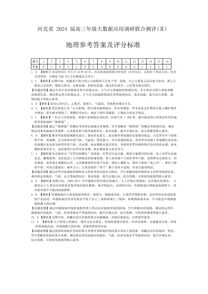 河北省2023-2024学年高三上学期大数据应用调研联合测评(Ⅱ)地理答案