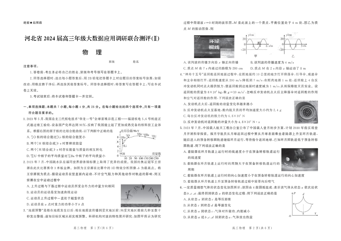 河北省2023-2024学年高三上学期大数据应用调研联合测评(Ⅱ)物理