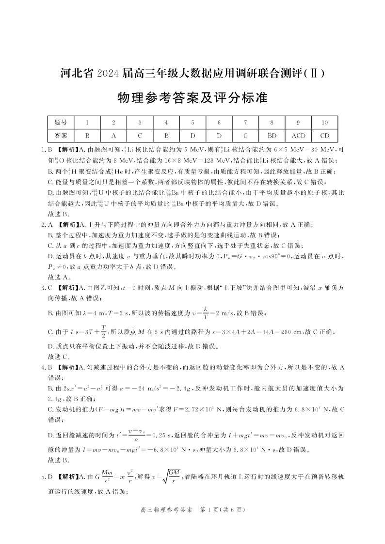河北省2023-2024学年高三上学期大数据应用调研联合测评(Ⅱ)物理答案