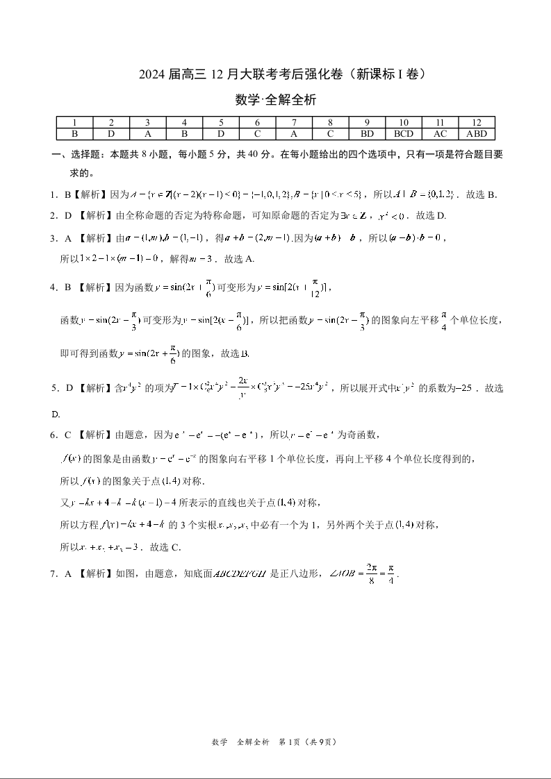 数学-2024届高三12月大联考考后强化卷(新课标I卷)(全解全析)