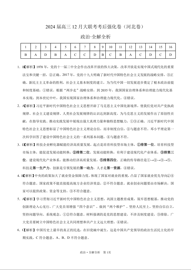 政治-2024届高三12月大联考考后强化卷(河北卷)(全解全析)