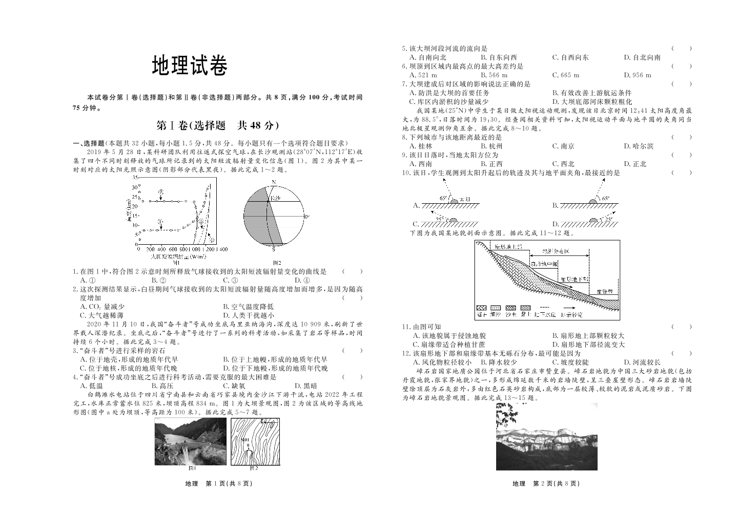 河北省承德市部分高中2023-2024学年高三上学期12月期中考试 地理