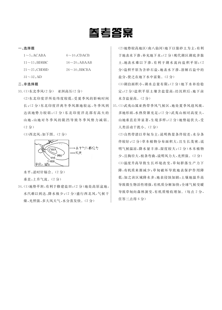 河北省承德市部分高中2023-2024学年高三上学期12月期中考试 地理答案