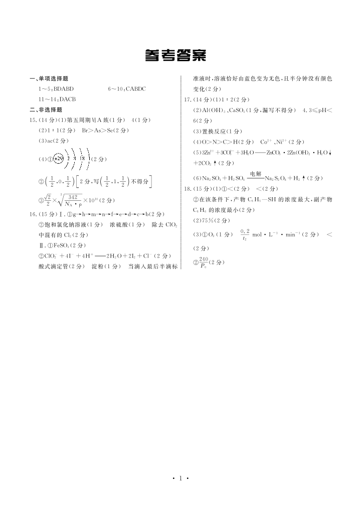 河北省承德市部分高中2023-2024学年高三上学期12月期中考试 化学答案