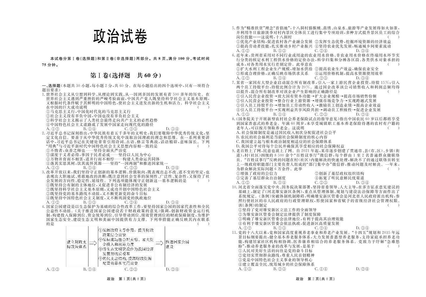河北省承德市部分高中2023-2024学年高三上学期12月期中考试 政治