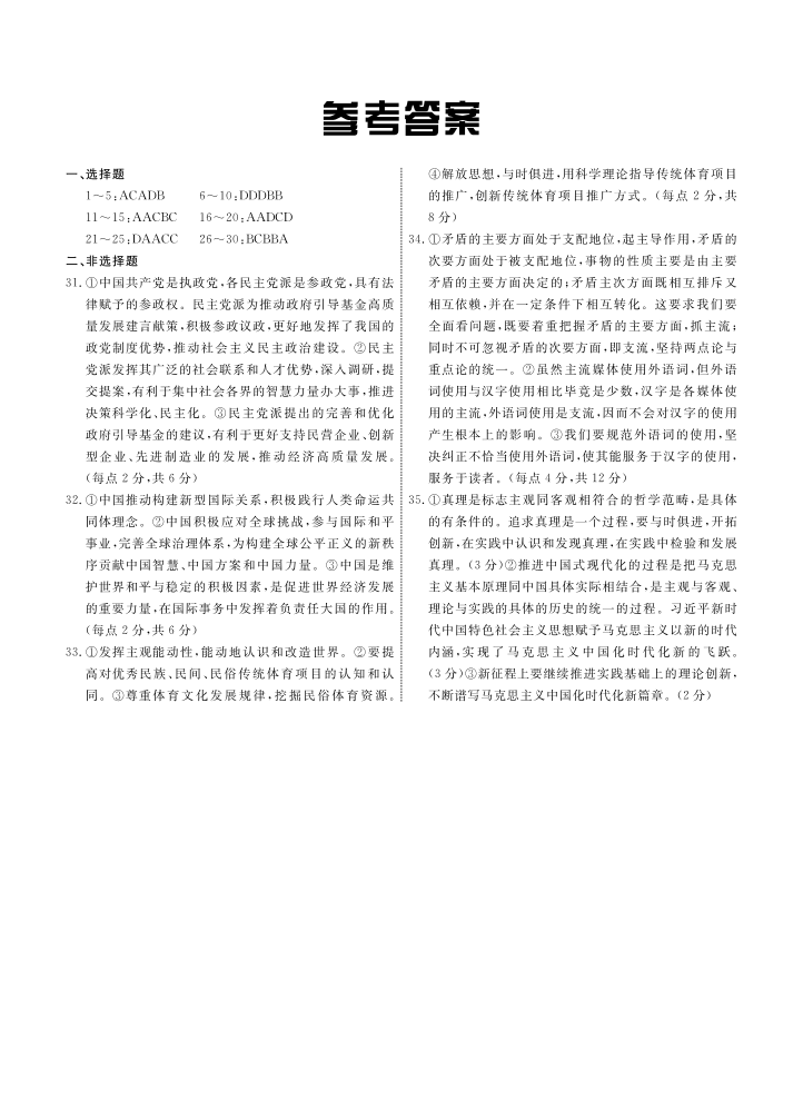 河北省承德市部分高中2023-2024学年高三上学期12月期中考试 政治答案