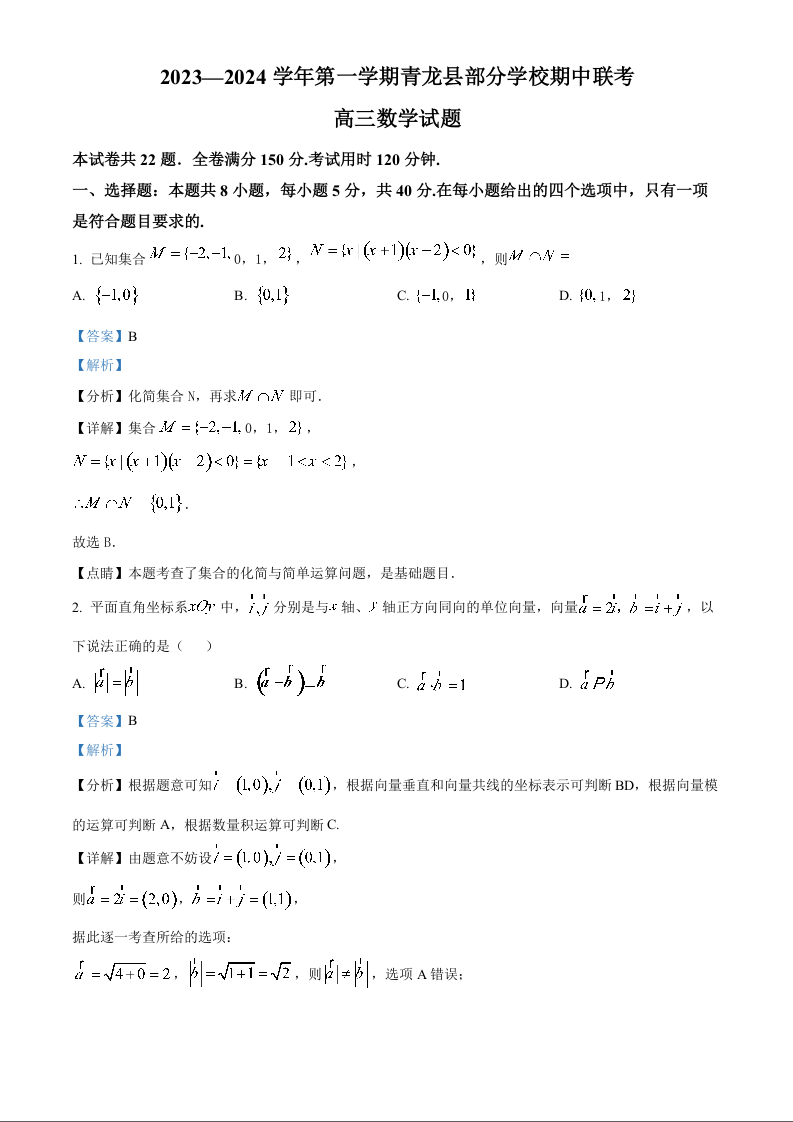 河北省秦皇岛市青龙县联考2023-2024学年高三上学期11月期中联考 数学答案