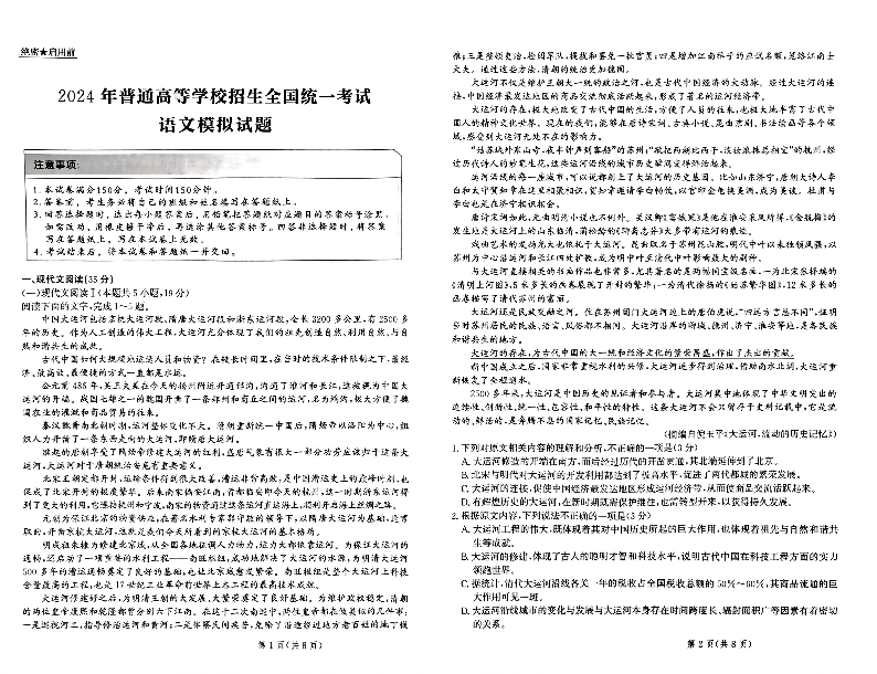2024届河北省部分重点高中高三上学期学业水平选择性考试模拟 语文