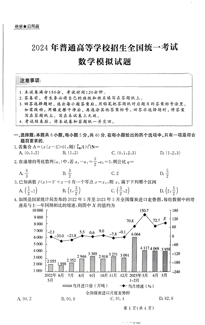 2024届河北省部分重点高中高三上学期学业水平选择性考试模拟 数学