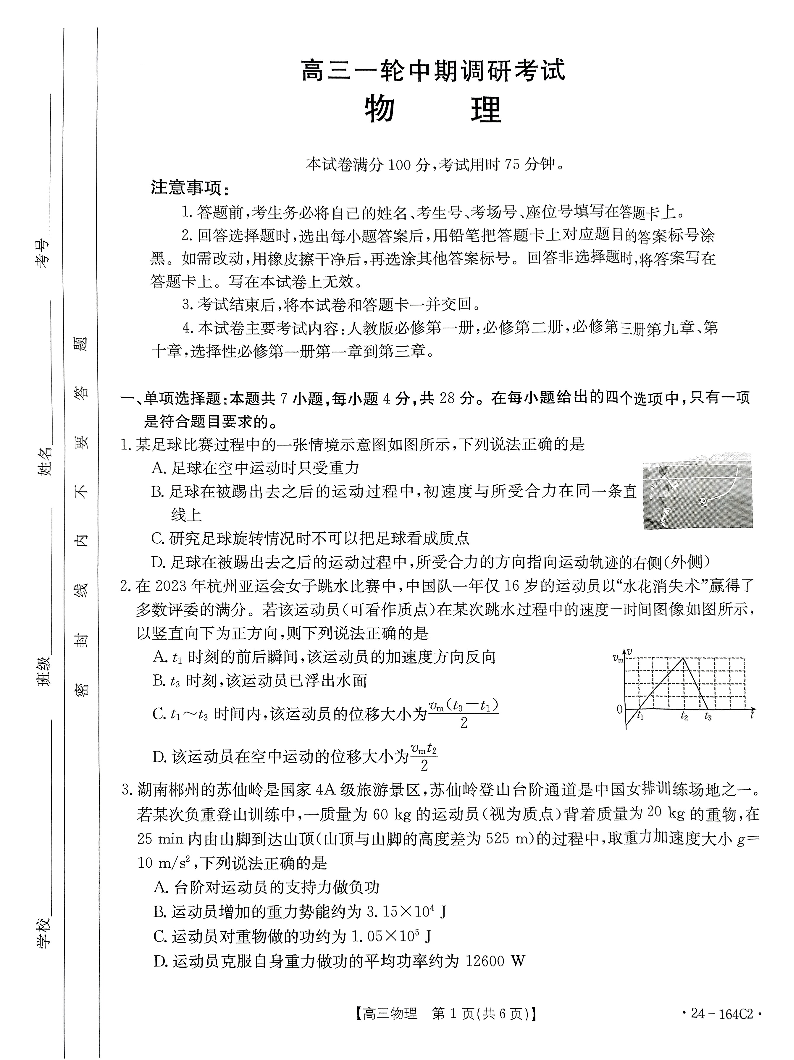 河北省廊坊2023-2024学年高三一轮中期调研考试 物理