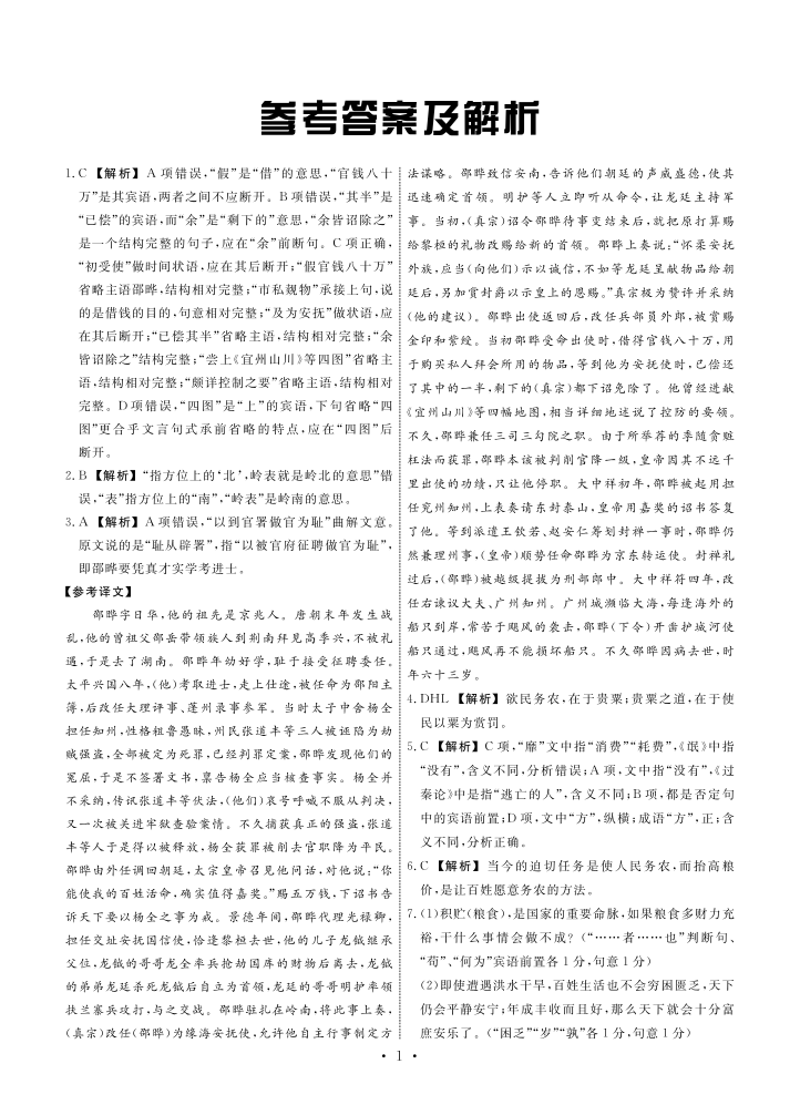 河北省邢台市部分高中2023-2024学年高三上学期期中考试 语文答案