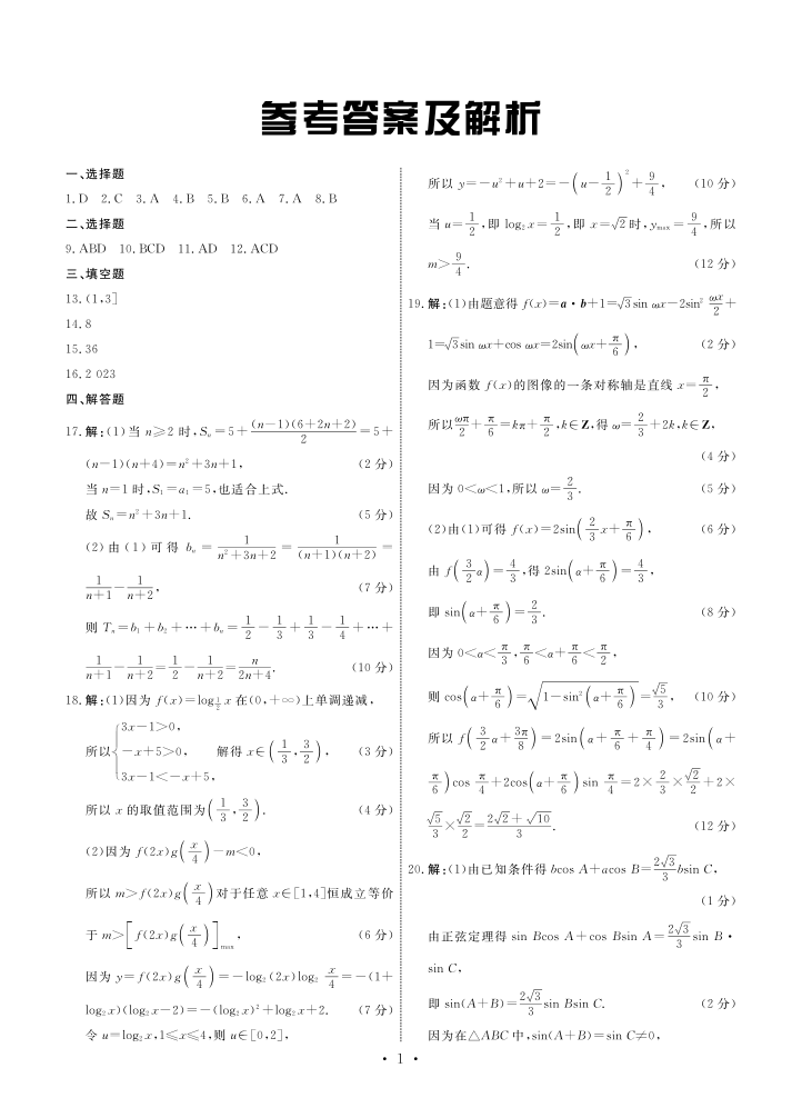 河北省邢台市部分高中2023-2024学年高三上学期期中考试 数学答案