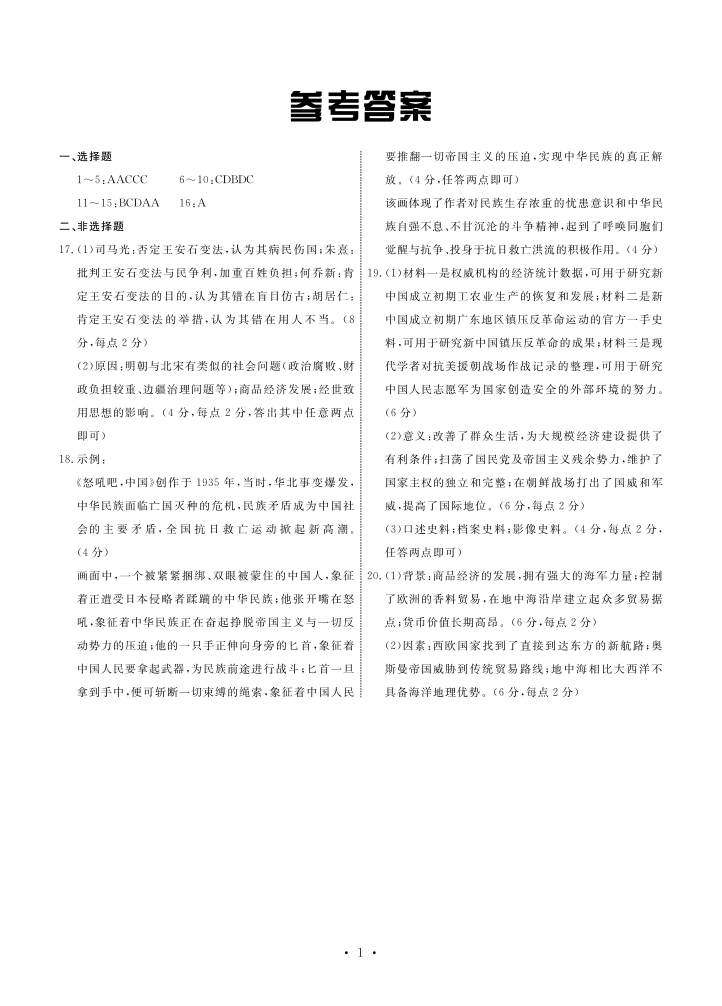 河北省邢台市部分高中2023-2024学年高三上学期期中考试 历史答案