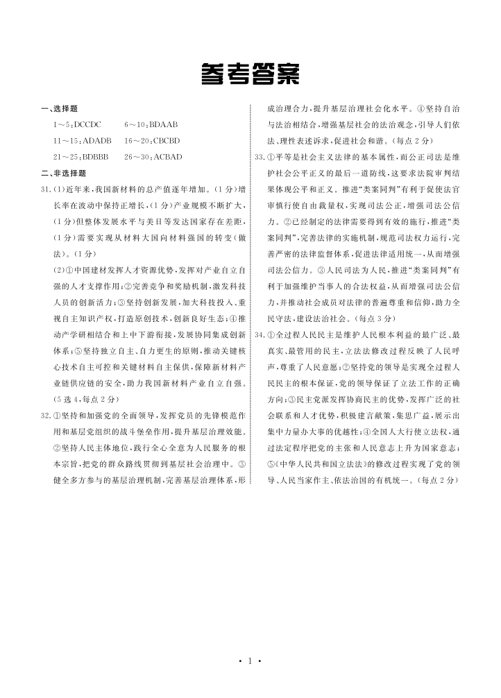河北省邢台市部分高中2023-2024学年高三上学期期中考试 政治答案