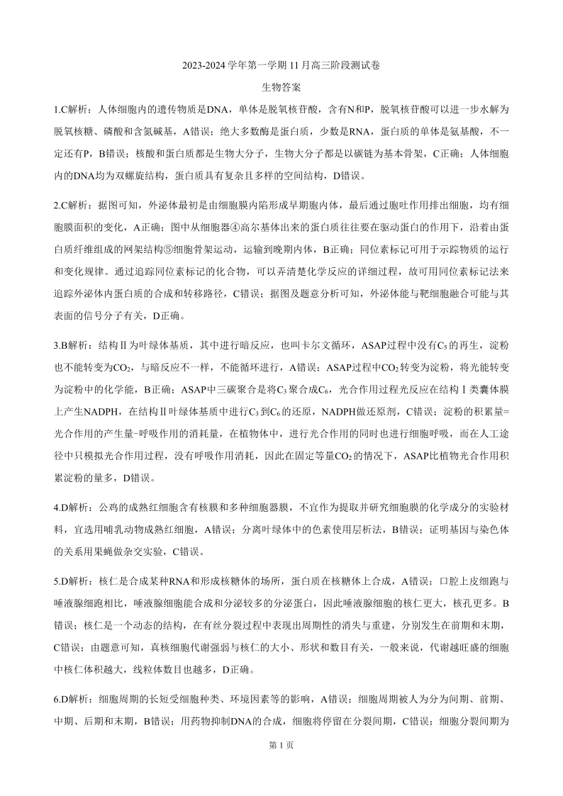 河北省新时代NT教育2023-2024学年第一学期11月高三阶段测试卷 生物答案