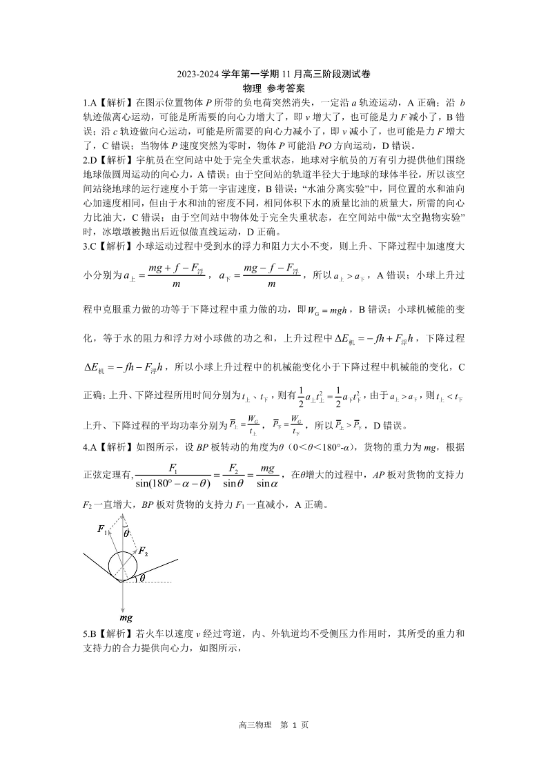 河北省新时代NT教育2023-2024学年第一学期11月高三阶段测试卷 物理答案