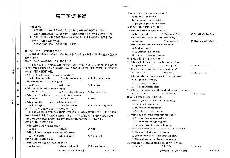 河北省保定市部分高中2023-2024学年高三上学期10月联考 英语