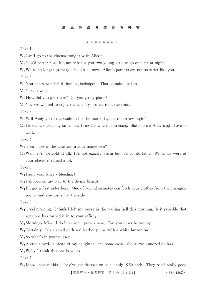 河北省保定市部分高中2023-2024学年高三上学期10月联考 英语答案