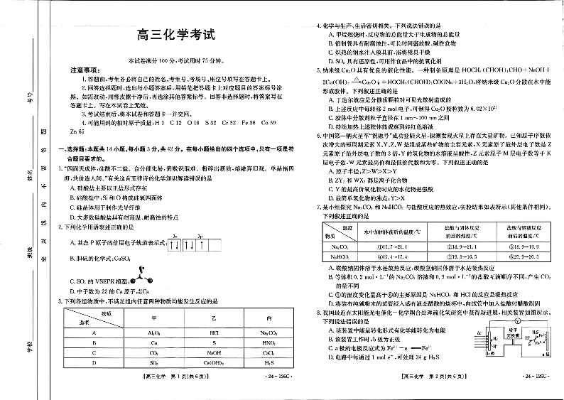 河北省保定市部分高中2023-2024学年高三上学期10月联考 化学