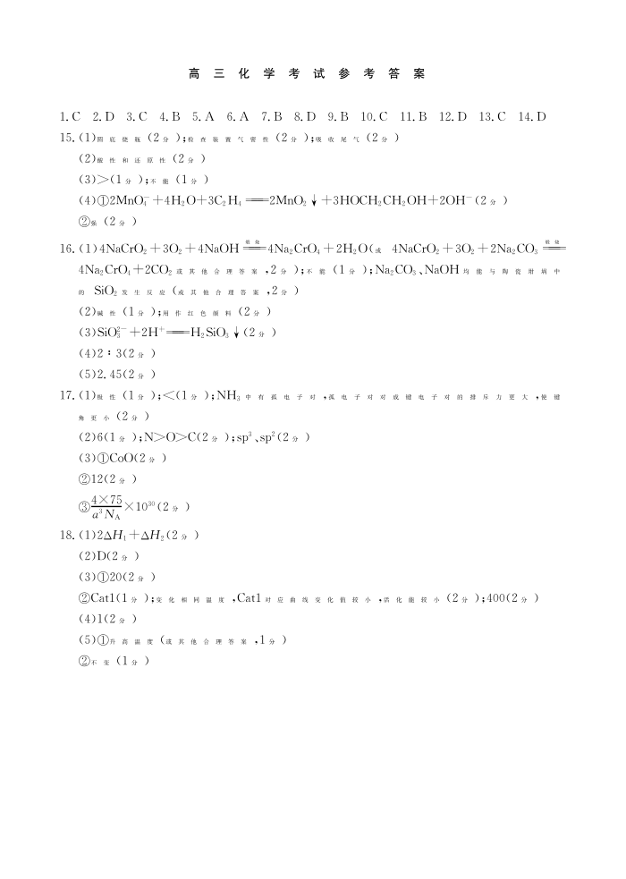河北省保定市部分高中2023-2024学年高三上学期10月联考 化学答案
