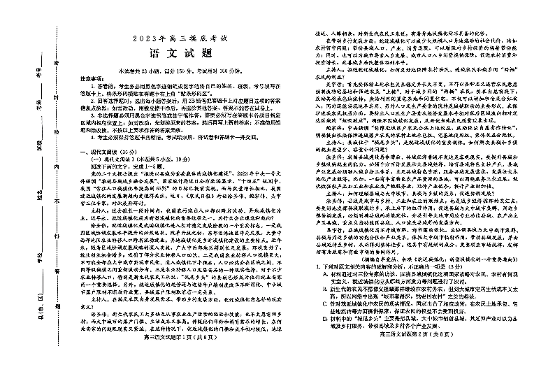河北省保定市2023-2024学年高三上学期10月摸底考试(期中)语文