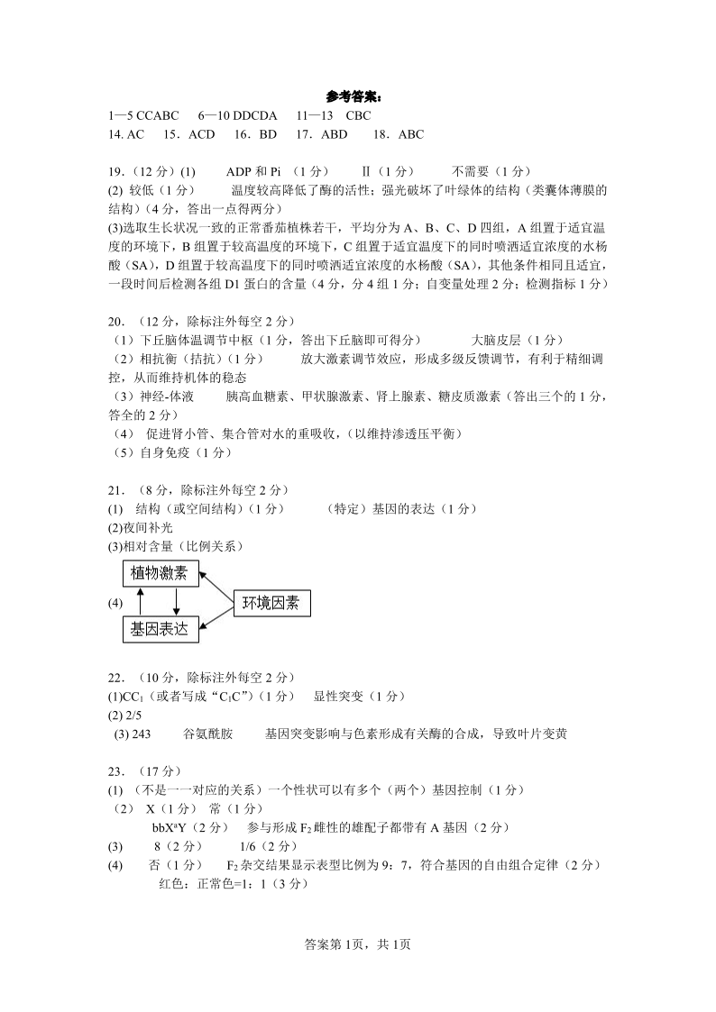 河北省保定市唐县第一中学2024届高三上学期10月月考 生物答案