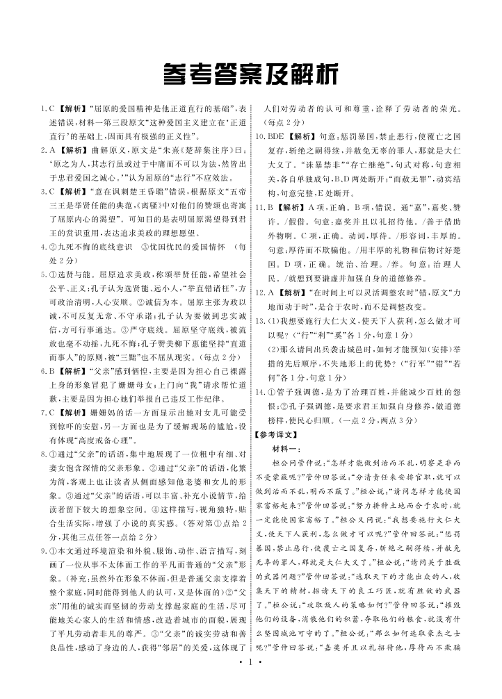2024届河北省部分高中高三下学期一模 语文答案