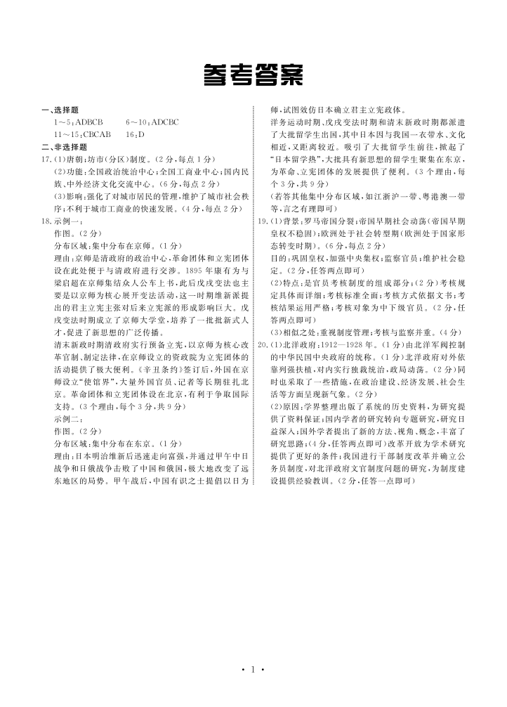 2024届河北省部分高中高三下学期一模 历史答案