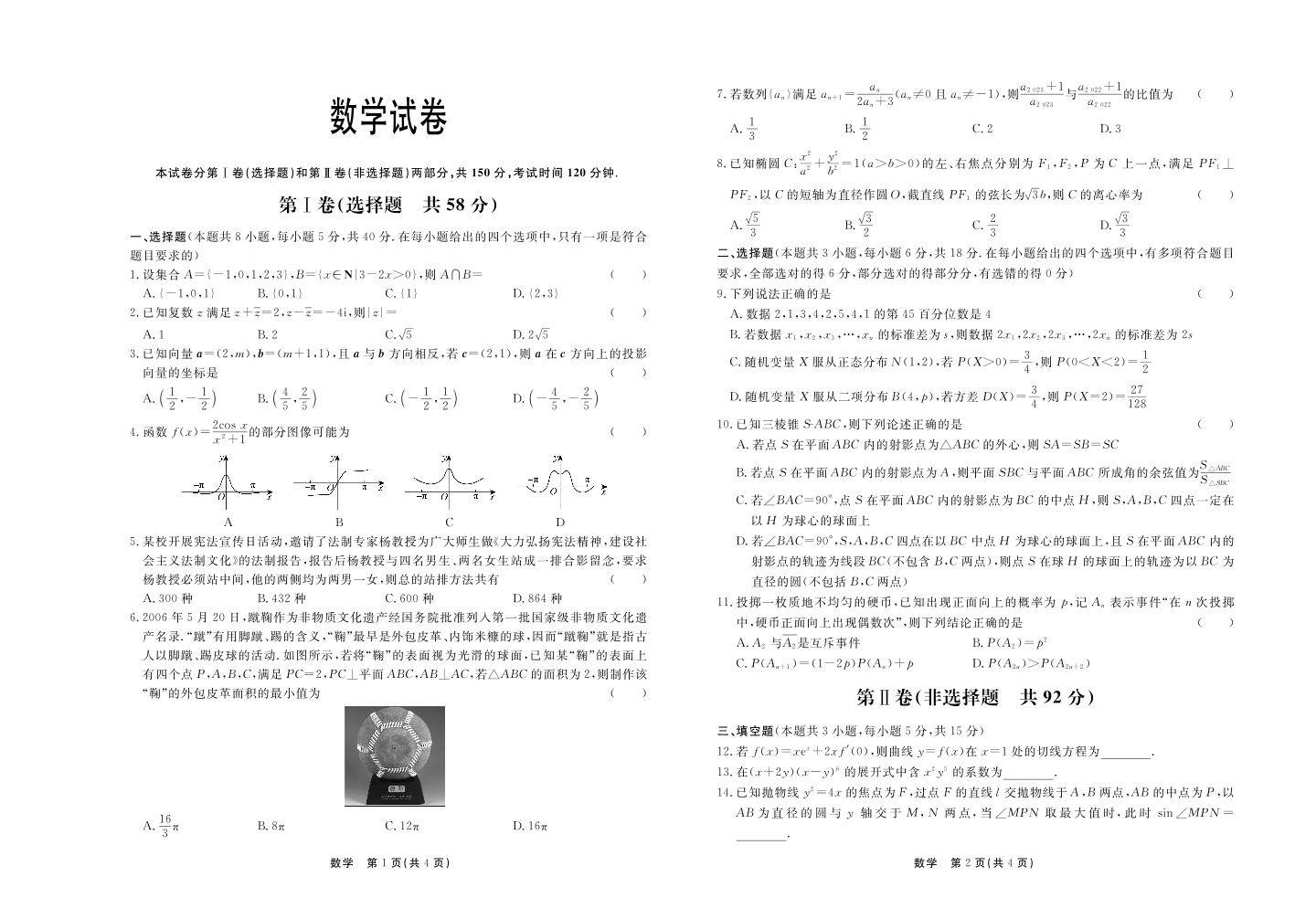 河北省部分高中2024届高三下学期一模试题 数学 PDF版含答案