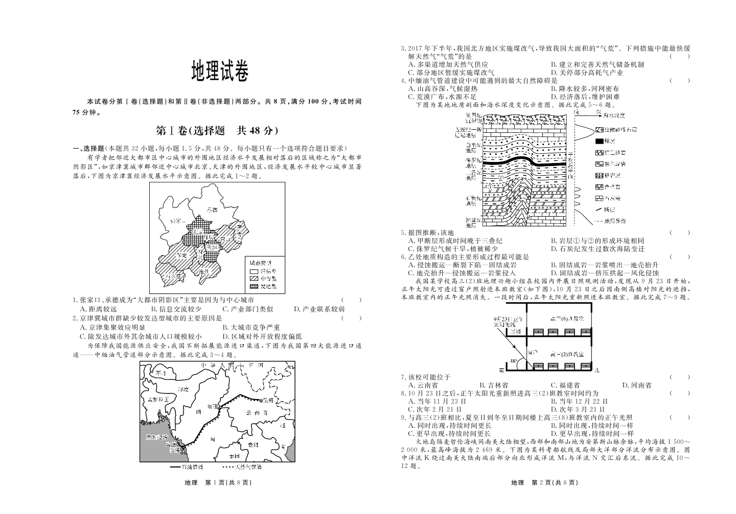 河北省部分高中2024届高三下学期一模试题 地理 PDF版含答案