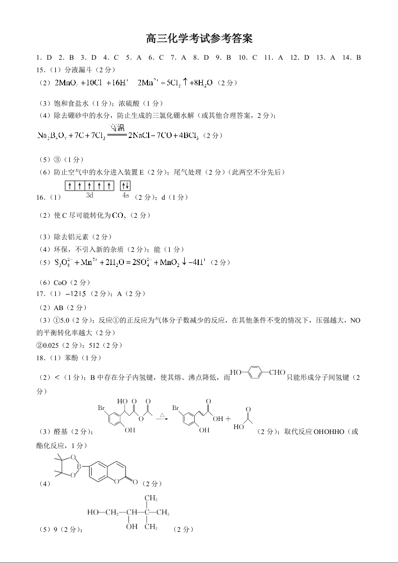 河北省邢台市邢襄联盟2024-2025学年高三上学期开学考试+化学答案