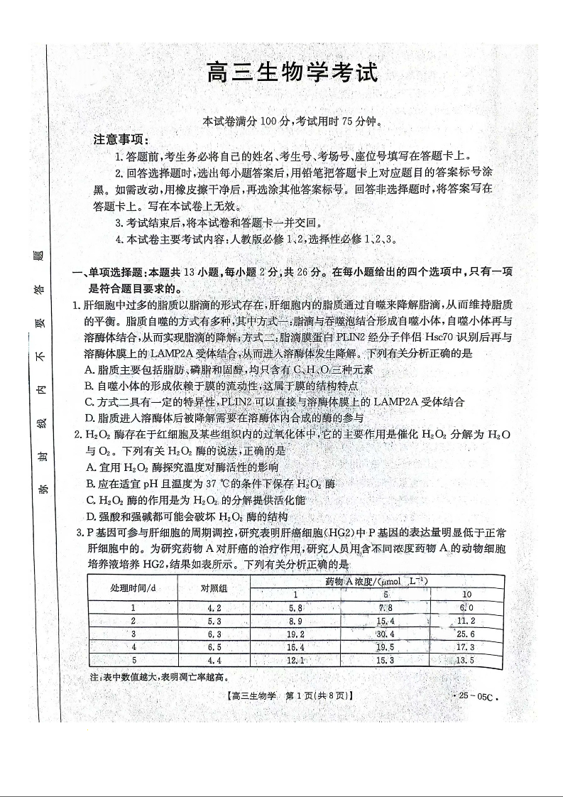 河北省邢台市邢襄联盟2024-2025学年高三上学期开学考试+生物